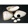 Piedras para juego de go de tradición artesanal japonesa Label Bleu. Las piedras blancas son hechas a partir de conchas y las negras son de pizarra. Se consideran como lo último en materia de piedra de go japonesa y son ampliamente utilizadas en el país del sol naciente.