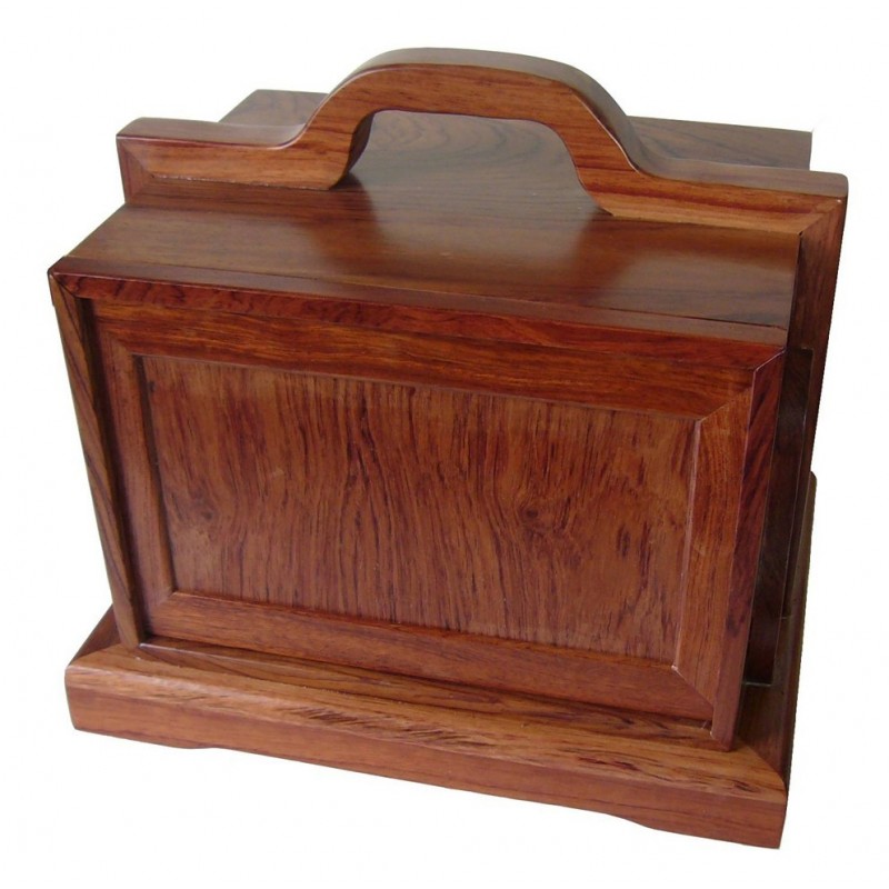 Mah-jong de madera de Palisandro Rojo. El juego viene presentado en un mueblecito tradicional de palisandro macizo con 5 cajones para almacenar las tejas.
