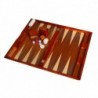 Backgammon in large mahogany wood with white milk acrylic chips and brown chocolate. The playing surface is worked with mahogany marquetry.
