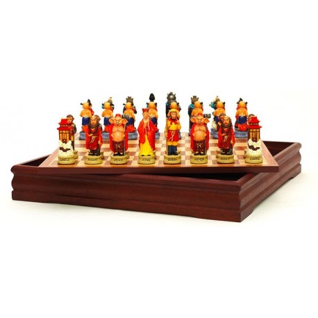 Chess pieces, Journey to the West. Complete chess set, pieces and board, with figures from the famous Chinese tale of the monkey king.