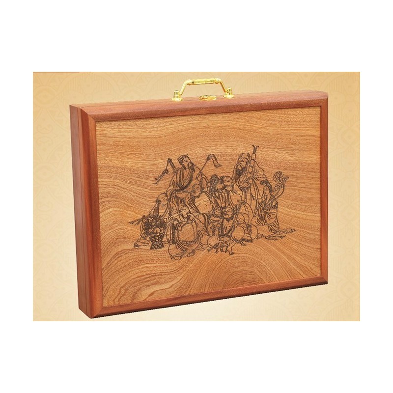 Great Mah-jong solid rosewood delivered with an elegant lacquered wooden box. Chinese characters are carefully engraved on wooden shingles.